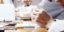 确认订单,技师拆解腕表、表壳 和机芯,取出指针和表盘。